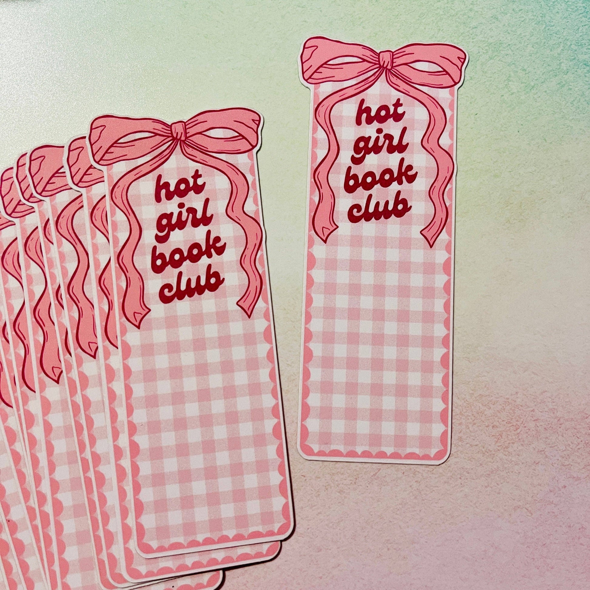 Join the Hot Girl Book Club in style with this trendy and durable bookmark! Featuring a sleek, laminated design with rounded corners, this bookmark is perfect for marking your place in any book while showcasing your book club pride. Measuring approximately 6" x 2", it has an image on the front and a matching single-colored back, making it both functional and stylish for avid readers.