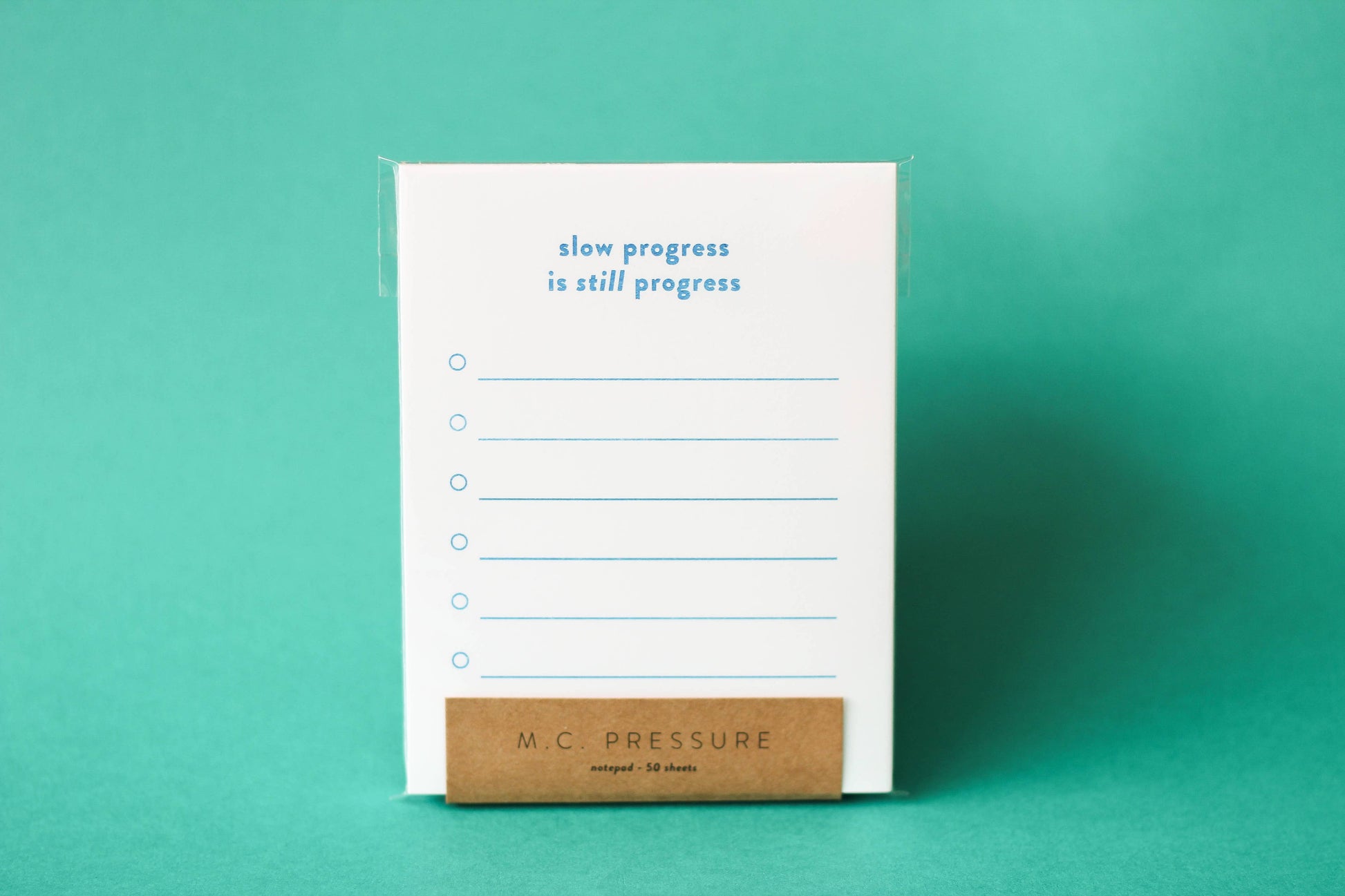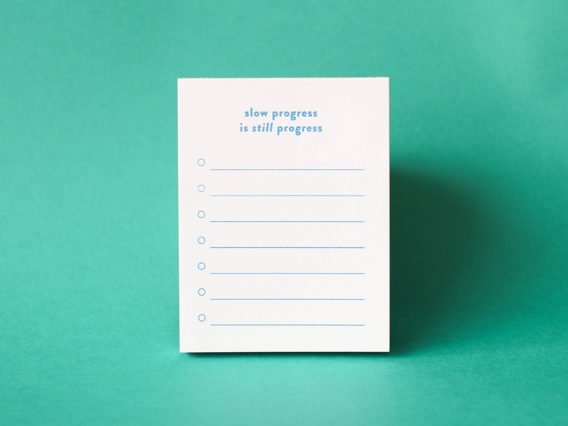 Introducing the Slow Progress Is Still Progress Risograph Notepad – perfect for staying organized while embracing progress at your own pace.